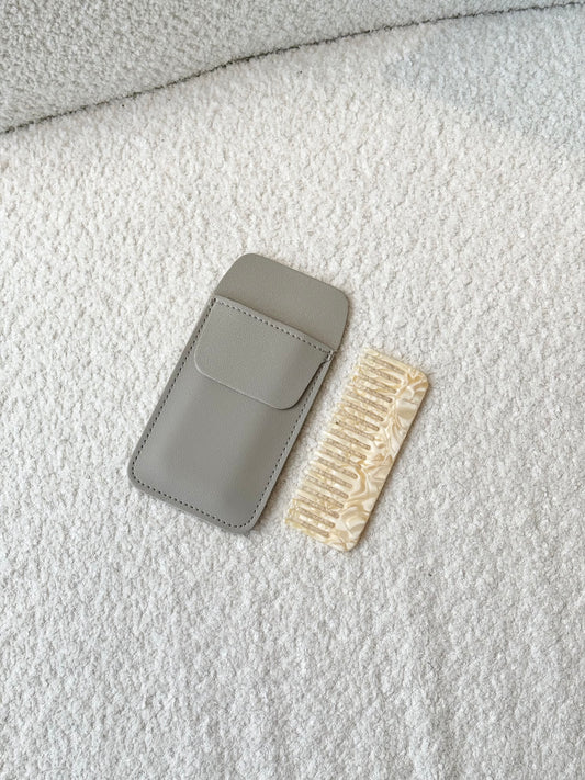 HAIR COMB + POUCH IN BLACK/TORTOISESHELL